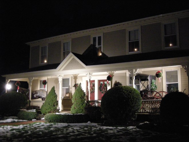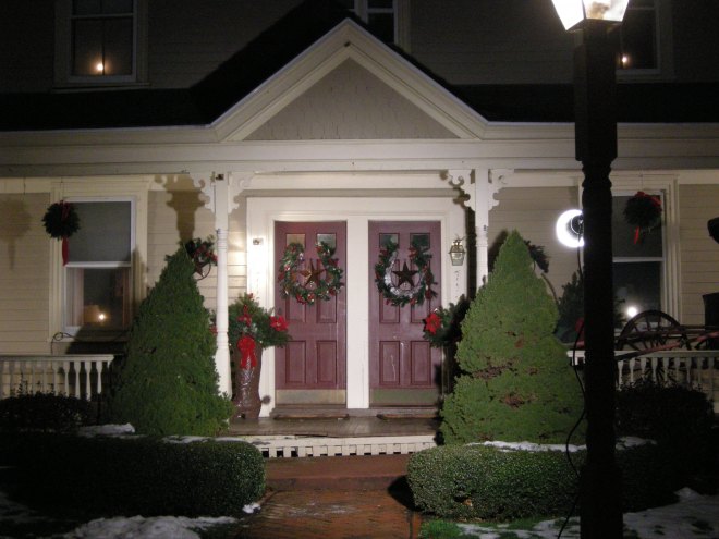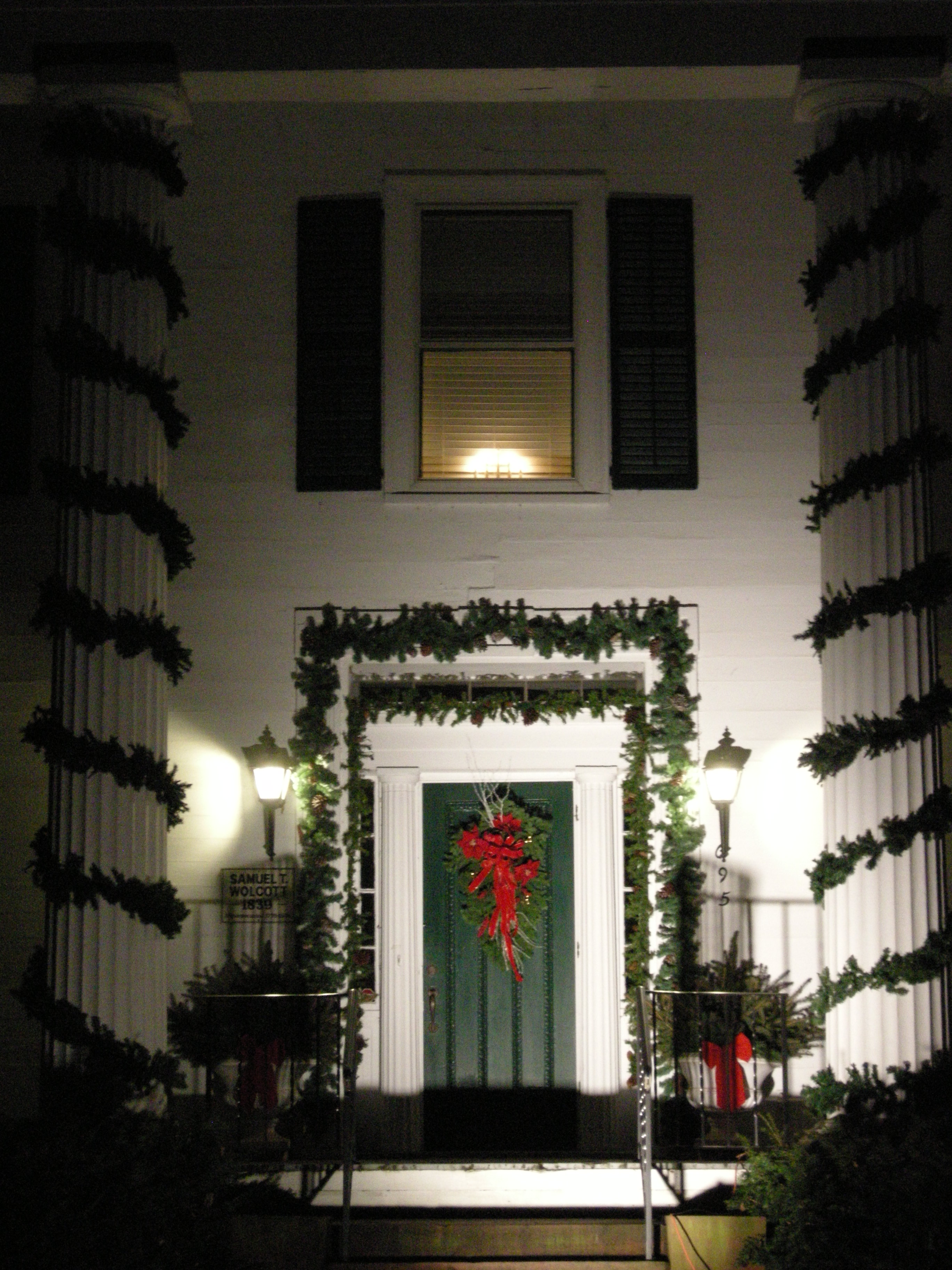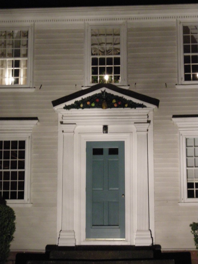The neighborhood here is rich with history and the architecture that reflects it.  At this time of year, 18th century homes dressed festively with greens, and small paned windows lit with candles, harken us back to a calmer, simpler time when these colonial homes, warmed by fires and friendly spirits, welcomed friend and traveler.
