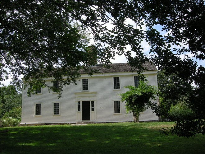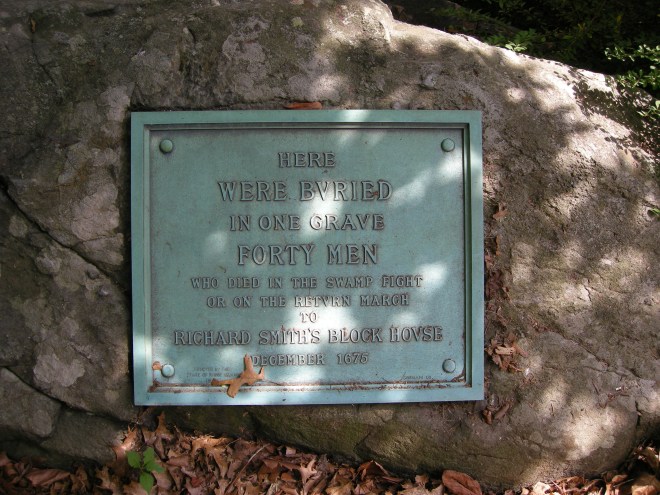 Roger Williams, founder of this Rhode Island colony, was banished from Plymouth in the 1630’s for clashing with their religious ideas. So he headed west, befriended the Narragansetts along this bay, and set up a trading post with another settler, Richard Smith, in an area a mile north of Wickford, called Cocumscussoc. He later sold his trading post to Smith, whose landholdings here would expand to a staggering size – nine miles long by three miles wide. Now, greatly diminished in size but not in historical importance, you can visit this old trading post. Well, the “newer” version of it, which was rebuilt in 1678 by Smith’s son, after the old one was burned by Indians. It is now a larger and more elegant house, known as “Smith’s Castle.” The museum is run by the Cocumscussoc Association. There is a particular marked grave on the grounds, noting where soldiers fell during the King Philip’s War. Forty men are buried in that grave.