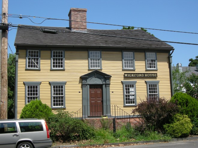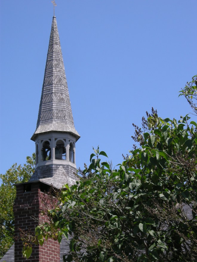 In the center of Wickford, is a “new” church, St. Paul’s, built in the 1800’s. It is called the “new” church because it replaced the “old” one, just a hidden walkway away. The Old Narragansett Church was built in 1707. It was established by the “Society for the Propagation of the Gospel in Foreign Parts” in 1706. The minister told me that it is the oldest continuously operating church this side of the Mississippi. Worship services are still held in the summer months. Gilbert Stuart – our most famous colonial portrait painter, noted for portraits of Washington, including the one on our dollar bill – was baptized here. On the first Sunday in August every year there is a service called Queen Anne Sunday, where a 1710 Communion service gifted by Queen Anne, and a prayer book of the time, is used. Familiar names adorn the stones around the grounds. Many Updikes, heirs to Smith’s Castle, are buried here.