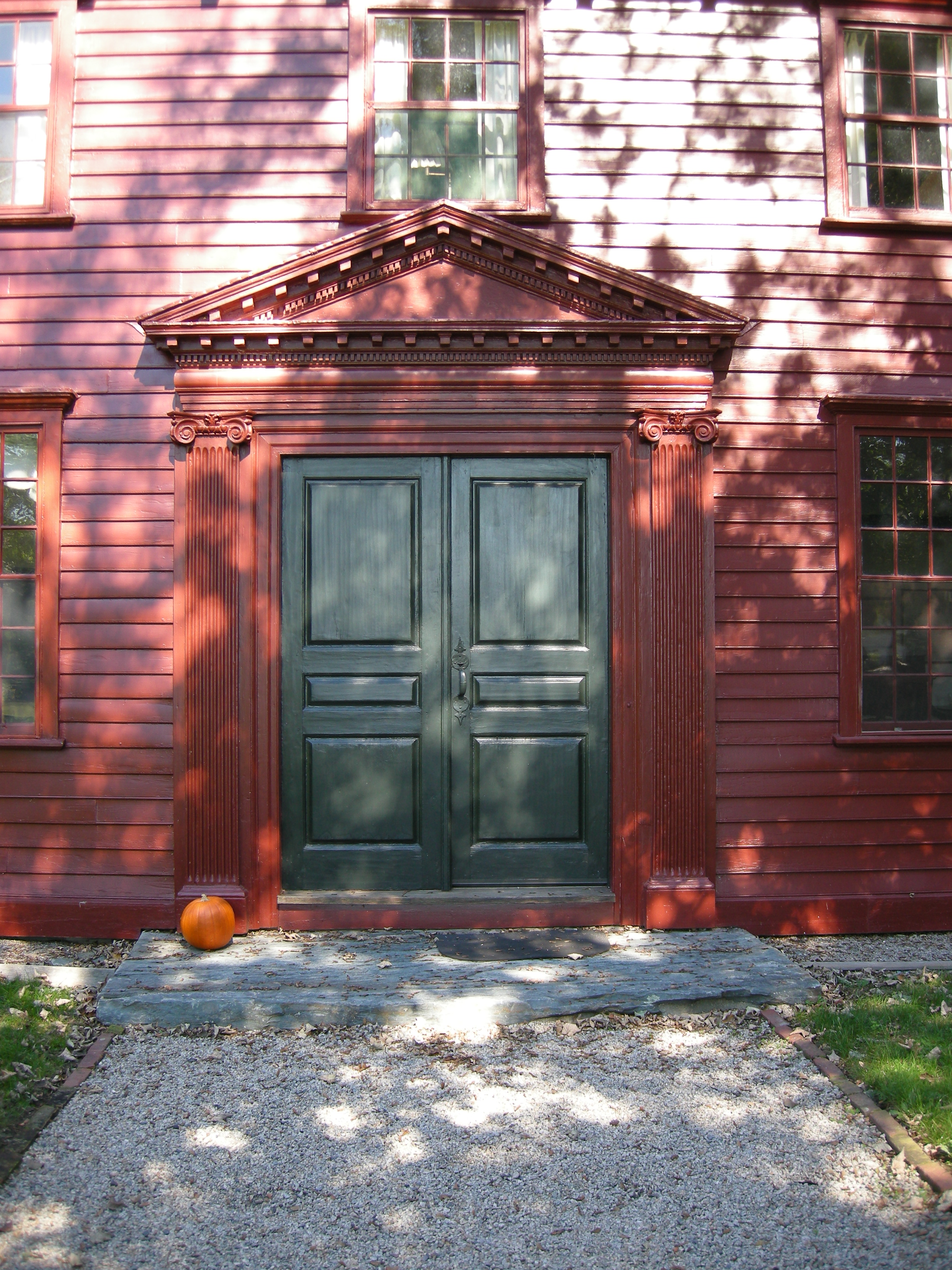 While it’s the architecture that lures us to these houses in the first place, it’s discovering the unique  stories of the original builders that enliven the experience.  From heiress to sea captain, revolutionary soldier to merchant, post rider to pig farmer, all who had a hand in the birth and direction of this experiment, make every visit an adventure.  While the home of George Berkeley, 18th century theologian and philosopher, was not  open when we were there, it was still a treat to view the unique architecture outside, and impetus to discover the fascinating history of the man responsible for it.  A man after my own heart, in his love for art, philosophy and architecture.   One of the books in his vast library was by a British architect named Inigo Jones, who had studied the architecture of Palladio in Italy, a style that obviously struck a chord with everyone as it began to be reproduced in England and here in America in the 18th century.  George Berkeley thought it the perfect addition to his little cottage as well.   Only thing is, to achieve this double doorway on his center chimney house with tiny front hall, one door would have to be false.