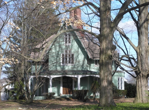 I have been researching the American Picturesque movement of the 19th century and its reason for being.  Gothic Revival, Carpenter Gothic – known by many names – highly popular movement away from our classical roots in the antebellum days of the 19th century – strongly influenced by the collaboration of noted architect Alexander Jackson Davis and landscapist Andrew Jackson Downing.  Two men with confusingly similar names, kindred spirits in a romantic time.  I had not been a fan of this architecture, but the more I learn, the more I appreciate it – especially its grace and simplicity when compared to the later chaos of Second Empire and High Victorian Gothic.  The only one of its kind in town, and quite possibly in  Hartford County, designed by AJD.  It really is exquisite in its detail, high ceilings, and dare I mention – I had previously posted this – its two story outhouse! (which is attached by the way, so maybe it should be “in”-house?)